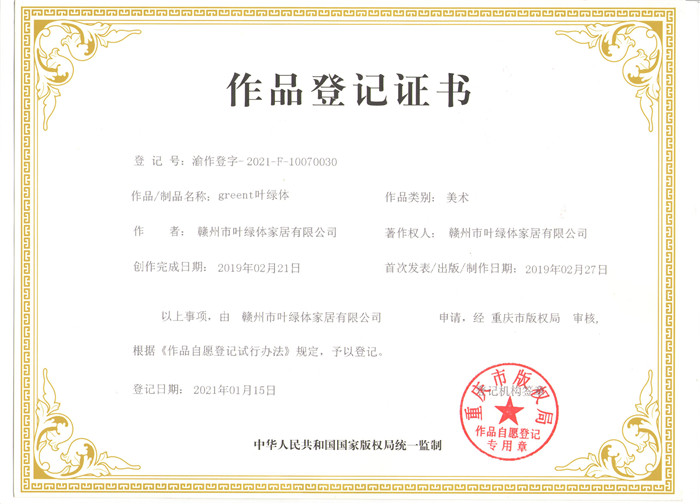 greent叶绿体版权证书